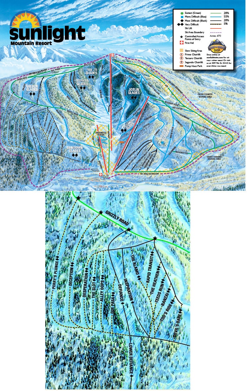 Klicka på bilden nedan för att se pistkartan för Sunlight Mountain Resort i hög kvalitet.