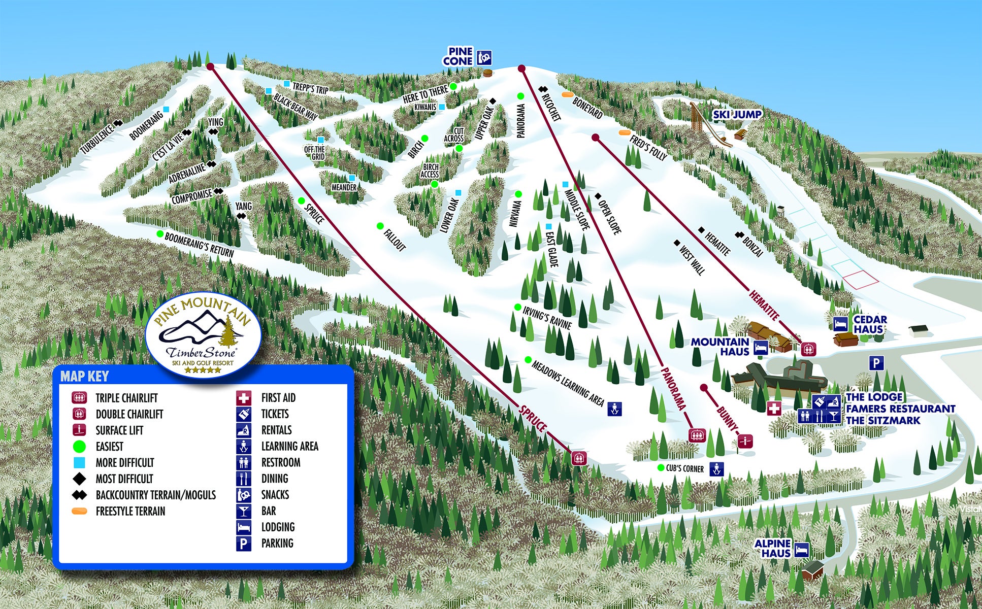 Klicka på bilden nedan för att se pistkartan för Pine Mountain i hög kvalitet.