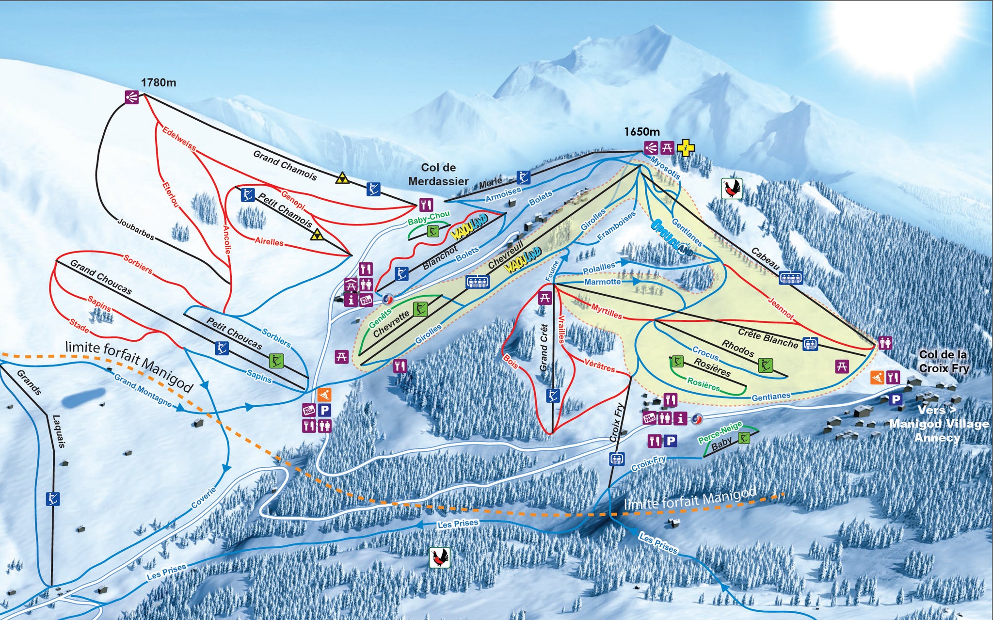 Klicka på bilden nedan för att se pistkartan för Manigod i hög kvalitet.