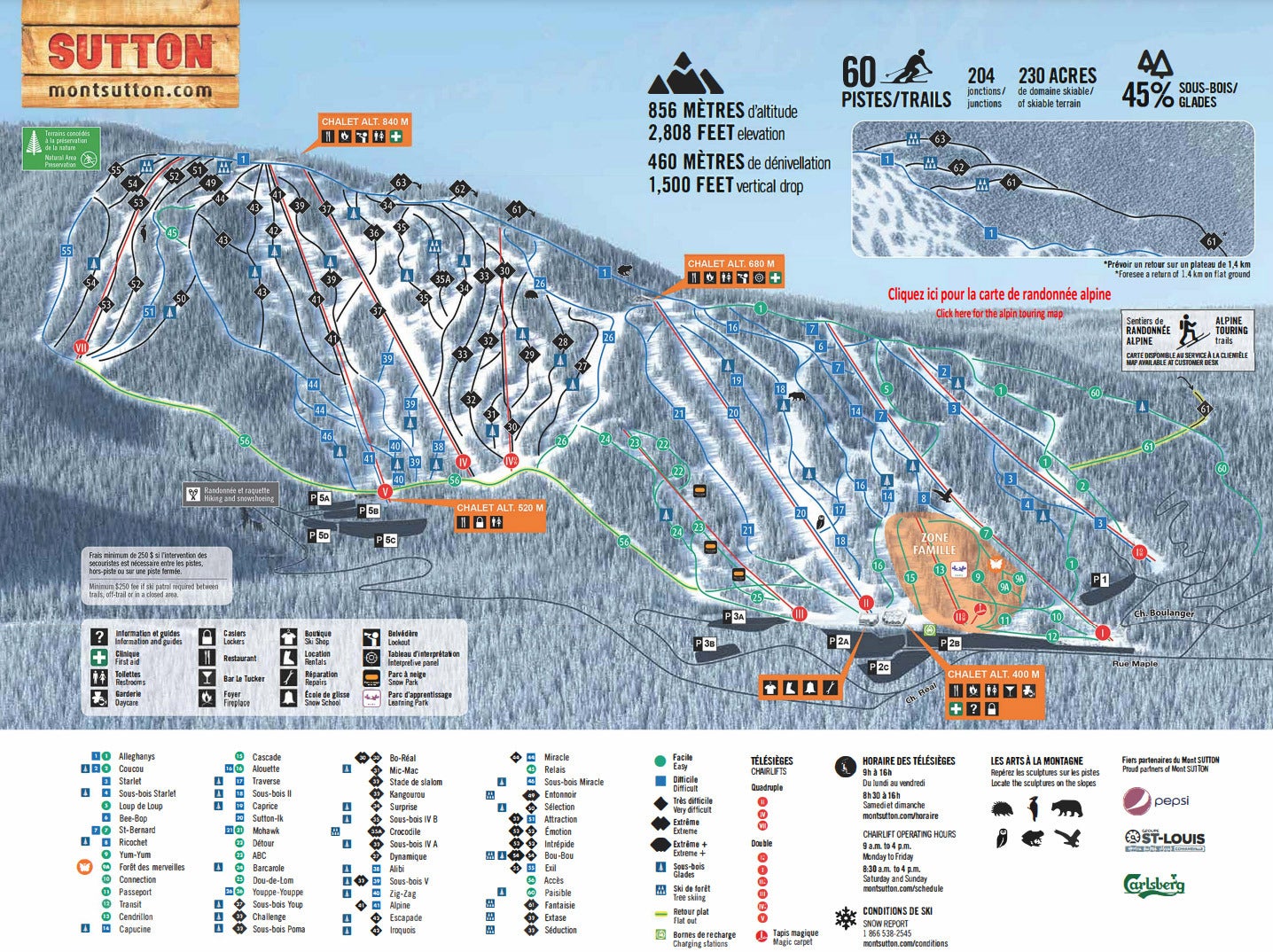 Klicka på bilden nedan för att se pistkartan för Mont Sutton i hög kvalitet.