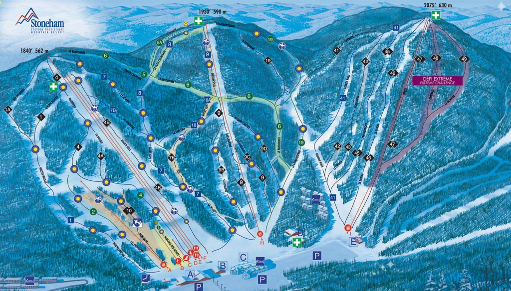 Se nedfarter och liftar i Stoneham med vår interaktiva pistkarta. Planera din dag innan du åker eller navigera i backarna medan du är på plats med den senaste pistkartan för Stoneham.